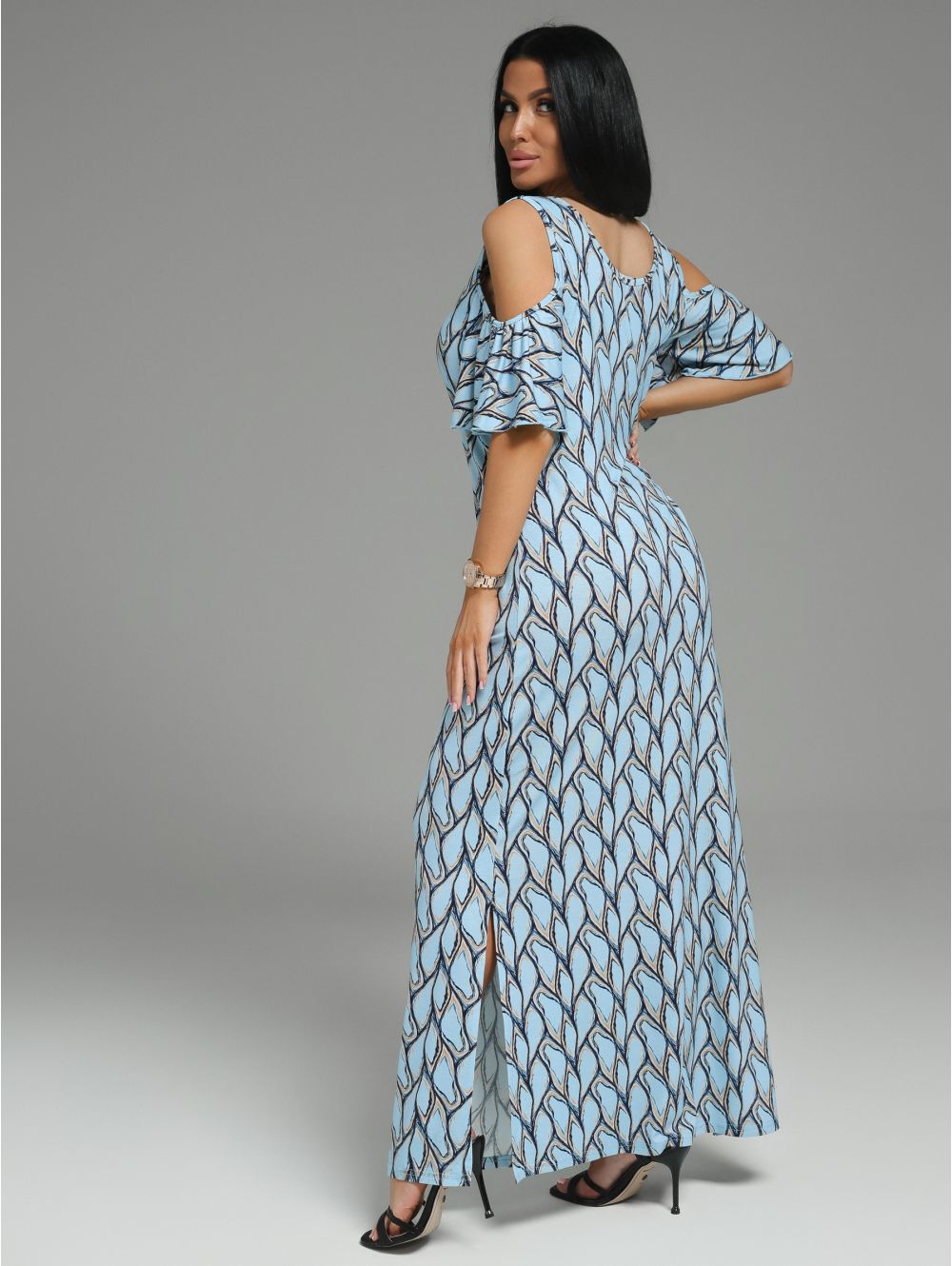 В длинном вискозном платье легко скрыть недостатки фигуры, материал изделия мягко струится, не мнется, охлаждает в летнюю жару.