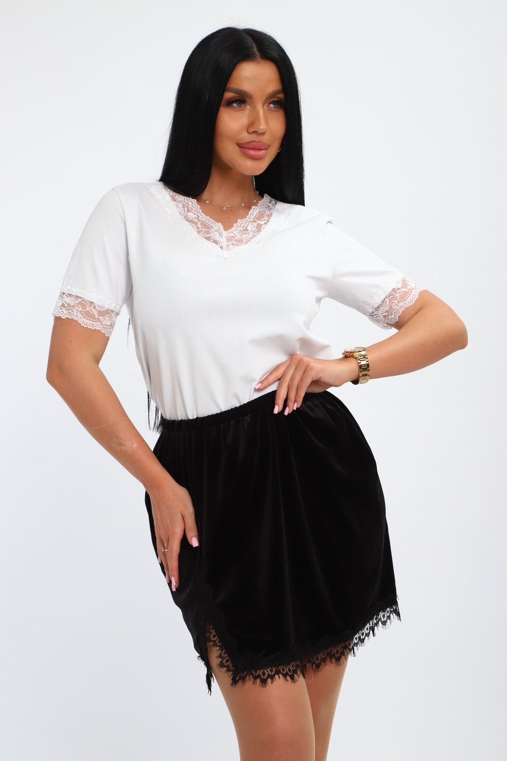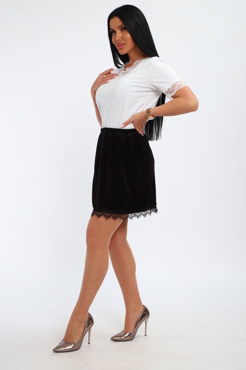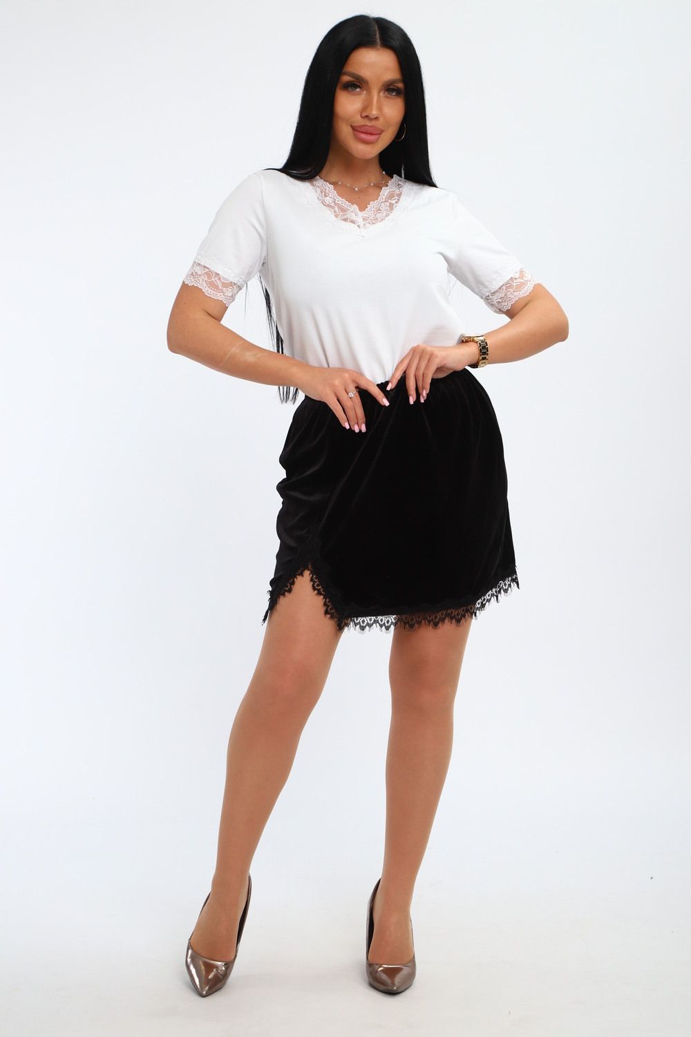 Стильная, бархатная юбка с кружевом – идеальный выбор для создания элегантного и соблазнительного образа. Мягкий блеск ткани подчёркивает женственность ,а отделка в виде кружева, делает модель особенно утончённой. Эта бархатная мини – юбка дополнит любой образ и подчеркнёт природную женственность!