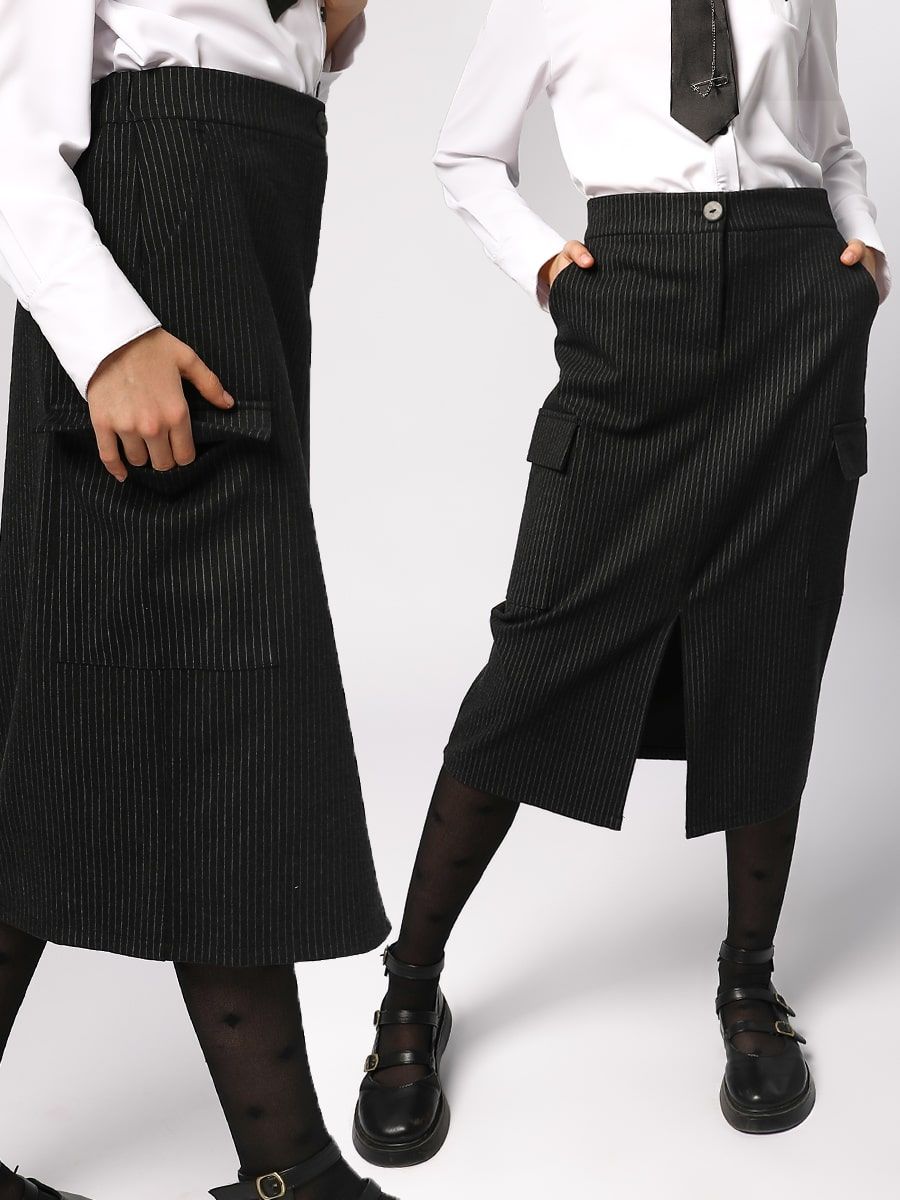 Юбка для девочки Соль&Перец прямого силуэта, с разрезом спереди. Юбка дополнена большими накладными карманами по бокам. Юбка застёгивается на молнию и пуговицу, а сзади в пояс вшита резинка для комфортной посадки по фигуре. Благодаря износостойкой трикотажной ткани юбка долго сохраняет форму и привлекательный внешний вид. Это отличный вариант для создания стильного школьного образа.