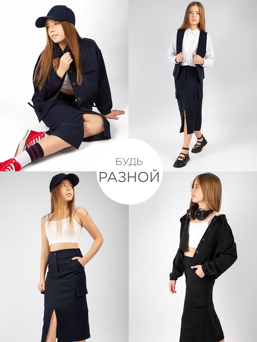 Юбка для девочки Соль&Перец прямого силуэта, с разрезом спереди. Юбка дополнена большими накладными карманами по бокам. Юбка застёгивается на молнию и пуговицу, а сзади в пояс вшита резинка для комфортной посадки по фигуре. Благодаря износостойкой костюмной ткани «Босс» юбка долго сохраняет форму и привлекательный внешний вид. Это отличный вариант для создания стильного школьного образа.