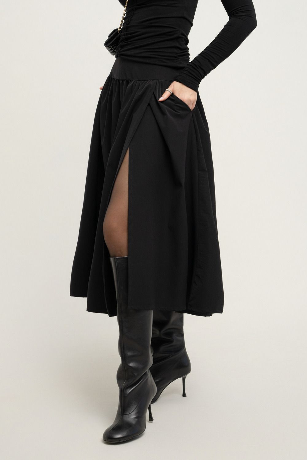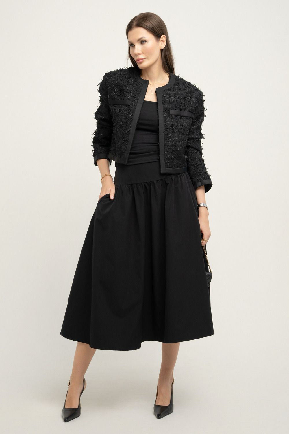 Черный цвет — это вечная классика, легко сочетающаяся с любыми оттенками и аксессуарами. Юбка идеально подходит для создания стильных и элегантных образов, будь то офисный дресс-код или особое мероприятие.