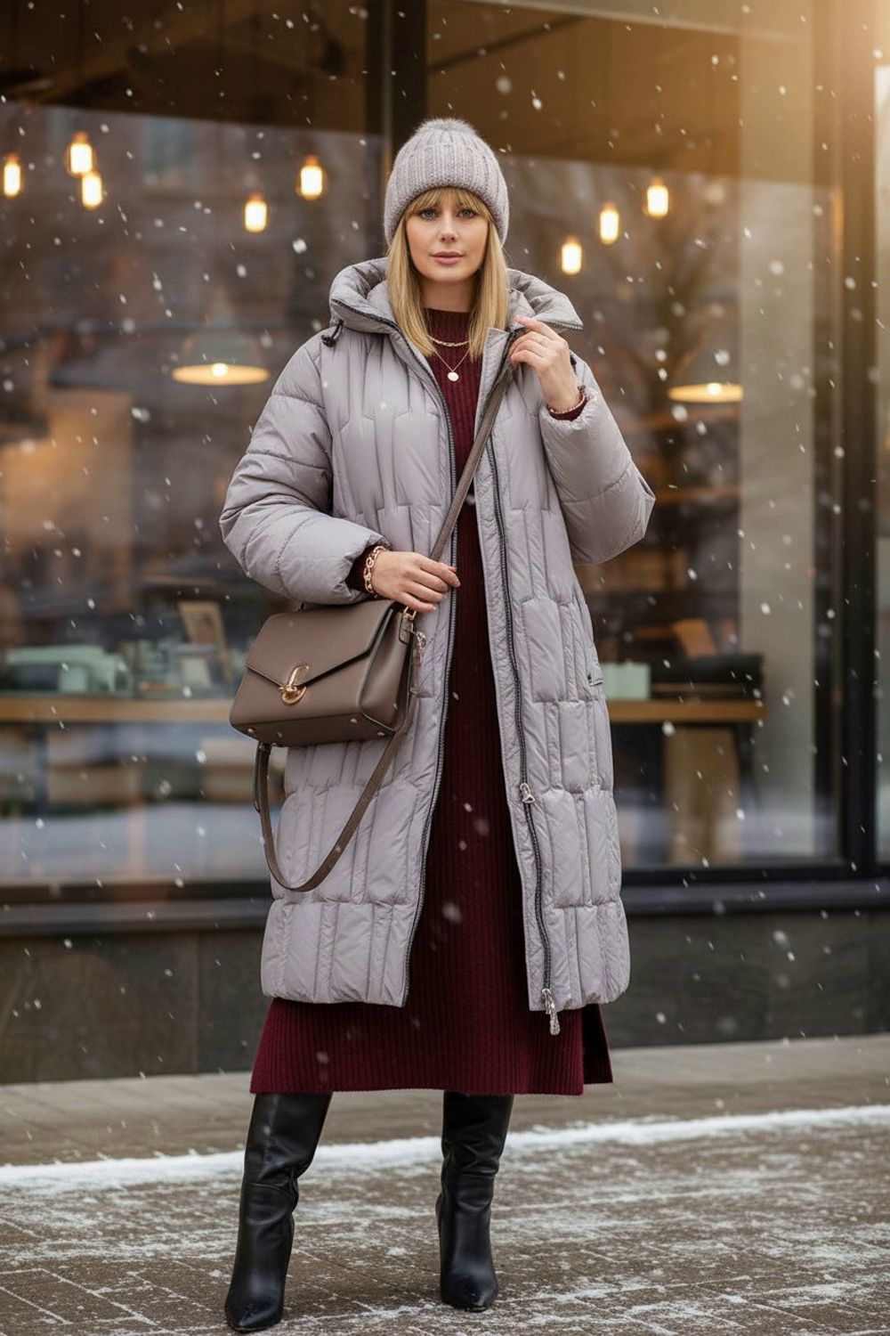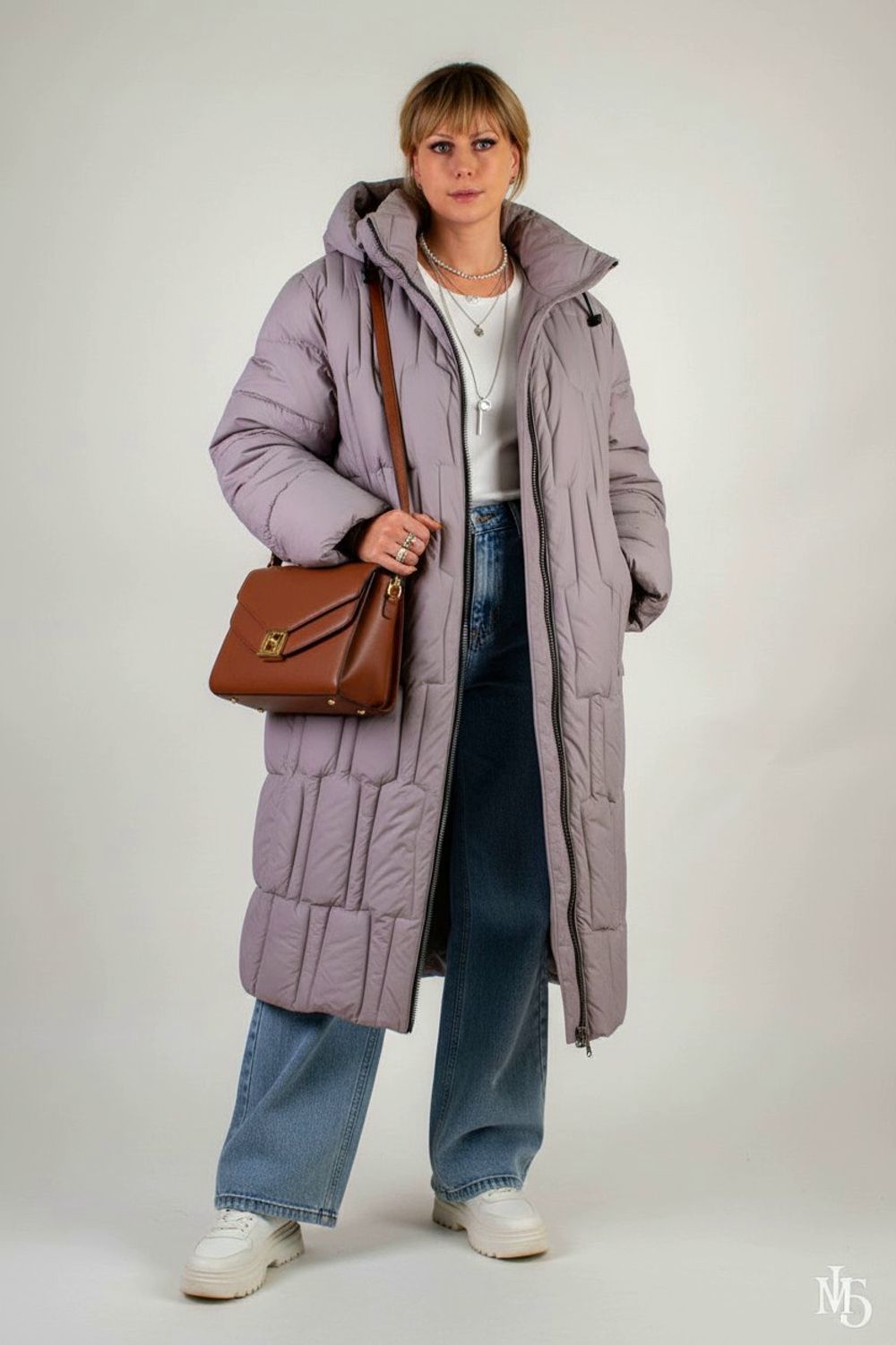 Материал верха – плотная матовая ткань, отталкивающая грязь, шерсть и пыль. Цветовые варианты: трендовый бежевый, классический чёрный и насыщенная бирюза. Куртка доступна в расширенной размерной линейке больших размеров, что делает её универсальным решением для любой фигуры.