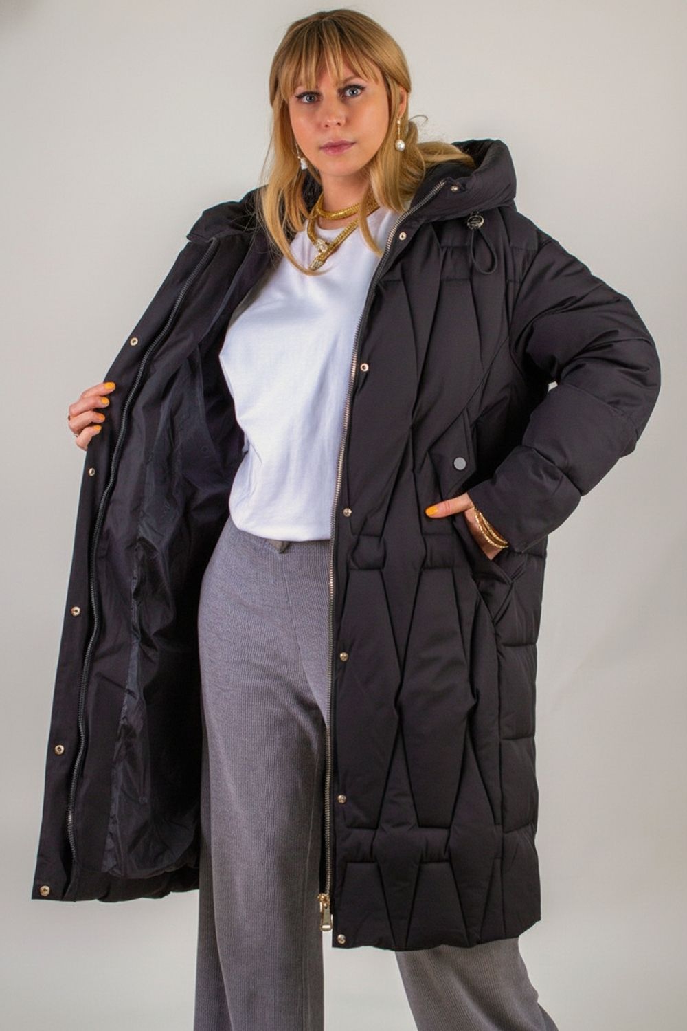 Зимняя куртка удлиненная, арт.28117 - черный