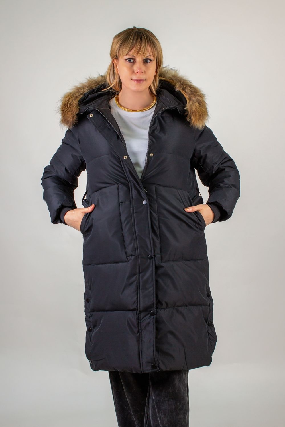 Зимняя парка, натуральный мех арт.623 - черный
